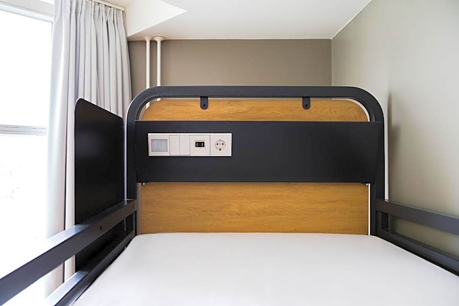 This dormitory room features a private bathroom. All bunks include a light feature, personal shelf, charging station with USB port and under-bed lockets. Pillow, duvet and bed linen are supplied. Towels are available at a surcharge.